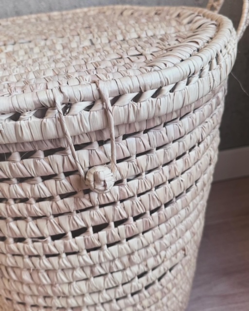 Laat je wasroutine een vleugje natuurlijke schoonheid en vakmanschap toevoegen met onze handgemaakte wasmand van palmblad, met een royale hoogte van 55 cm. Elke exemplaar is met zorg vervaardigd door bekwame ambachtslieden, waardoor een uniek stuk ontstaat dat zowel functioneel als esthetisch verbluffend is.